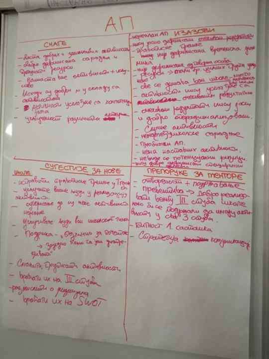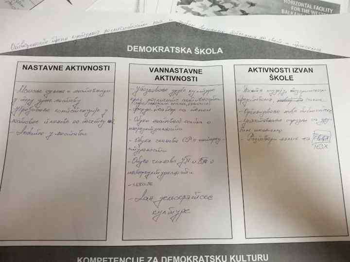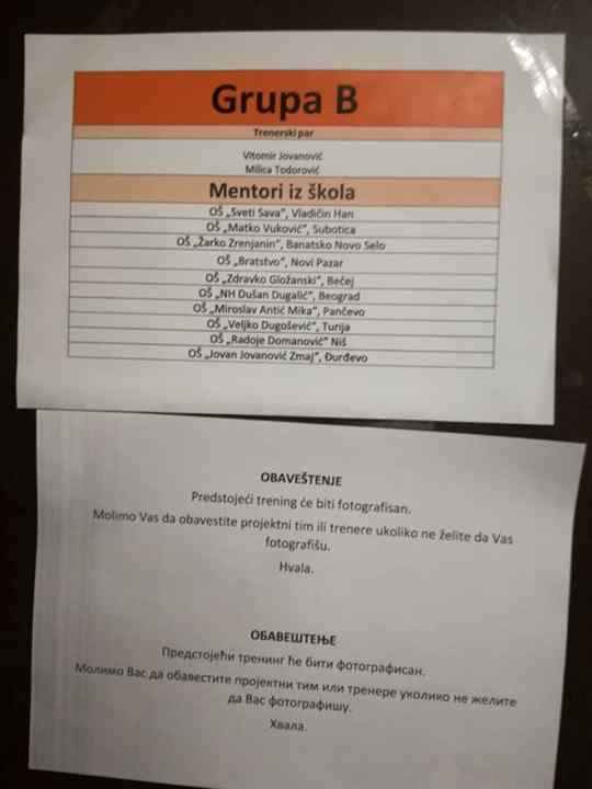 Поред наставника наше школе обуци су присуствовали и представници осталих двадесет школа из првог дела пројекта. Школе су овог пута биле подељене у две групе. Прва група је обухватила менторе средњих школа, а друга менторе основних школа. Обуци су присуствовали и представници Савета Европе, Министарства просвете, ЗВКОВ-а и ЗУОВ-а. Обуку су држали представници Центра за образовне политике.