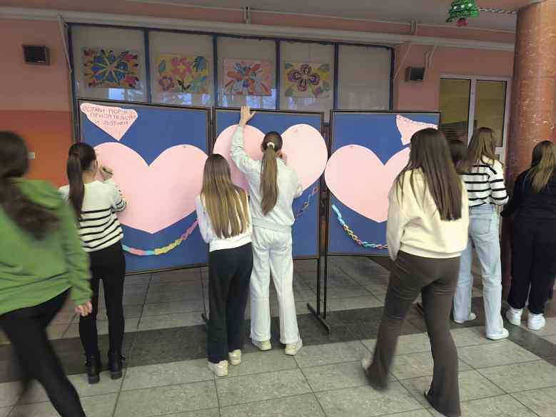 Још једна мала, али значајна акција Ученичког парламента допринела је лепшој и топлијој атмосвери у школи. Постављени панои са мотивима срца намењени су свим ученицима који желе да оставе поруке љубави, пријатељства и подршке. На тај начин, ученици сами креирају простор позитивних мисли, подстичу међусобно поштовање и јачају осећај заједништва. Ова креативна иницијатива позива све да застану, напишу лепо реч и допринесу пријатнијем и ведријем школском окружењу.